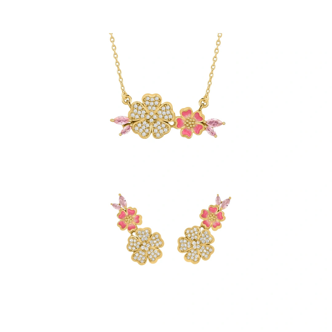 Made with 925 silver and 22kt gold plating, this necklace & earring set is designed to wear with your ethnic kurtis & saris, providing a lightweight and comfortable option, ideal for the summer season. Brighten up your style with these playful and versatile earrings.