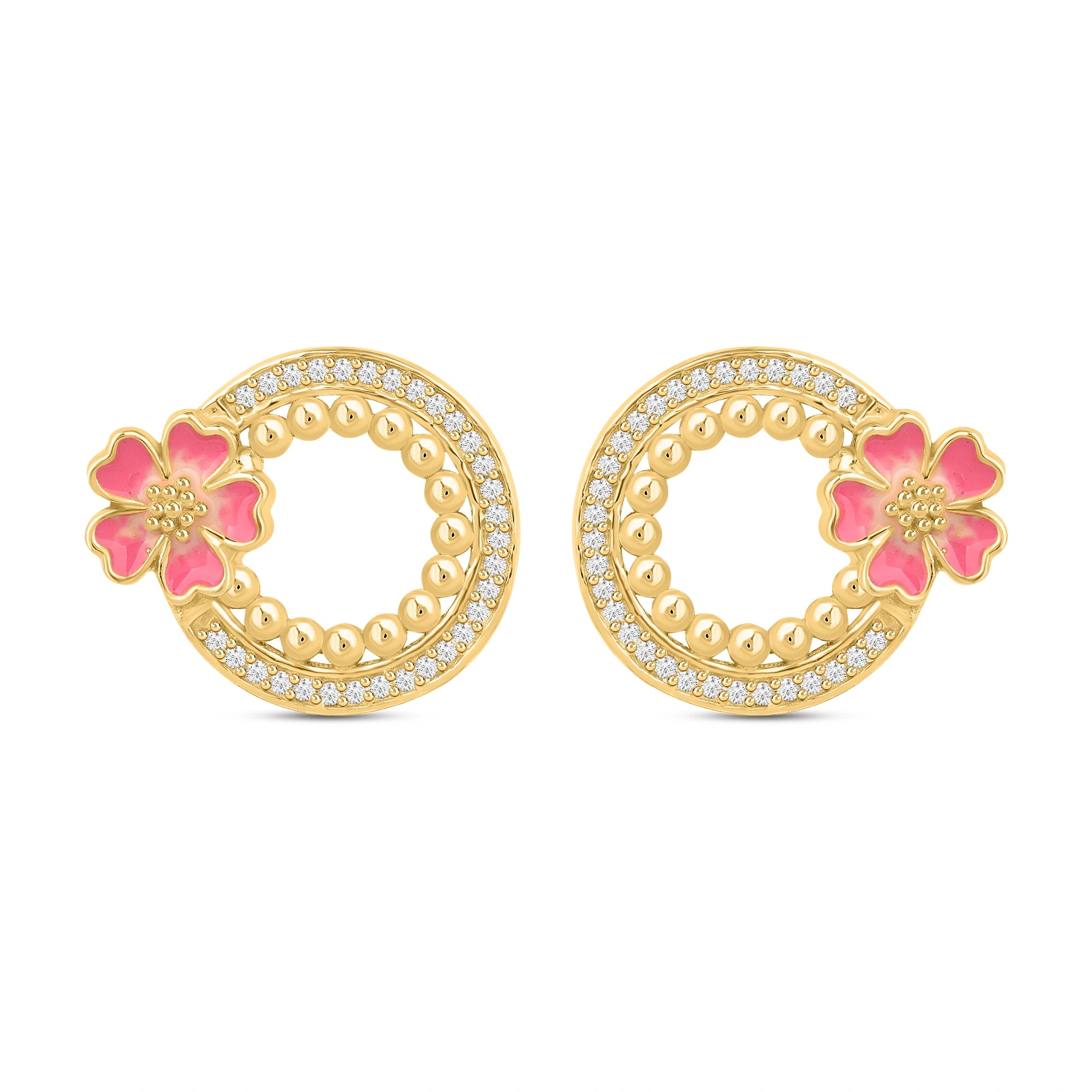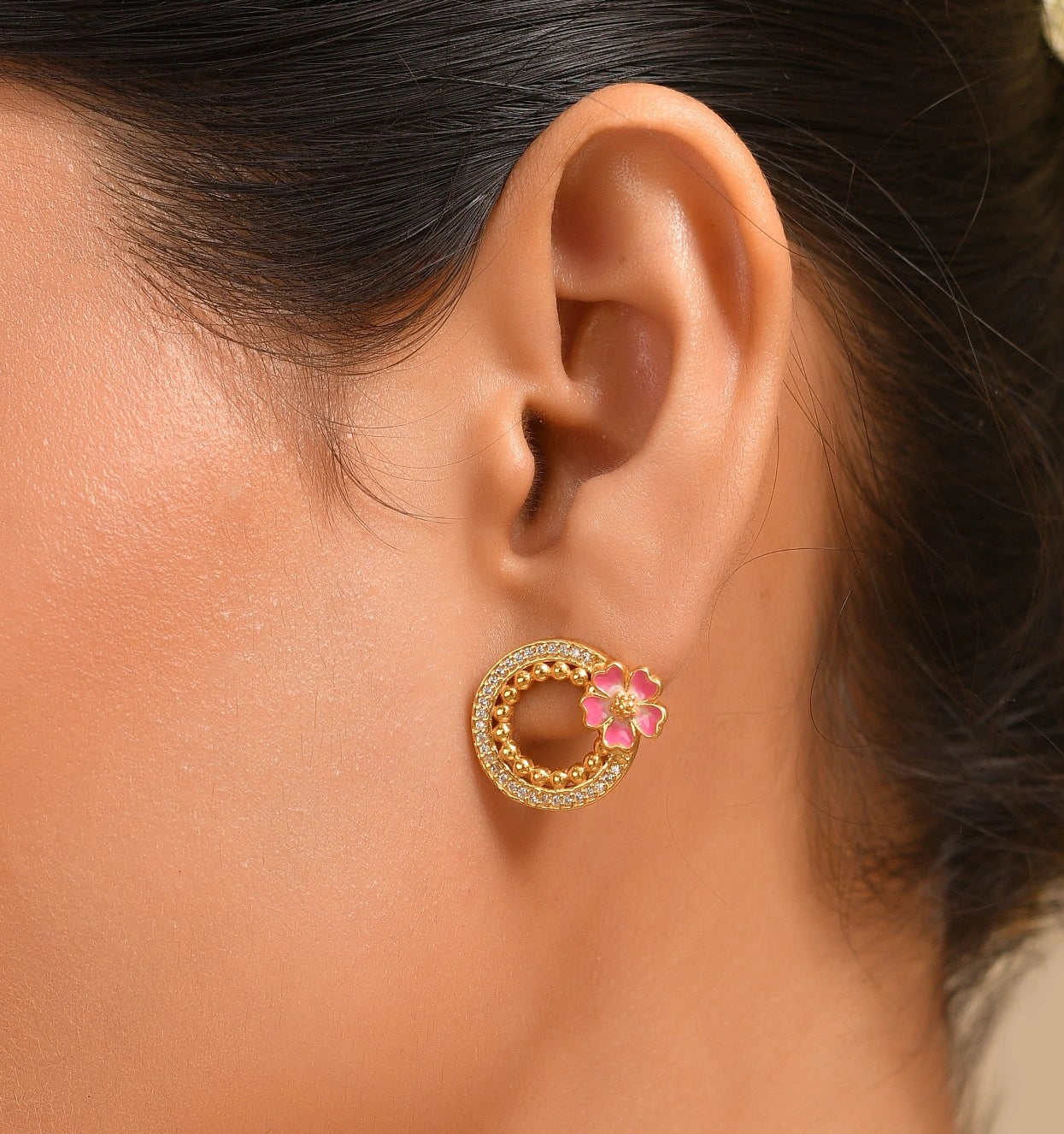 Crafted with shimmering pink AD stones and soft pink enamel details. Whether you're a flower enthusiast or just love statement pieces that make you smile, these beauties deliver instant glam with a whimsical twist. Dress them up or keep them casual—either way, you're guaranteed to turn heads and spread some floral joy!