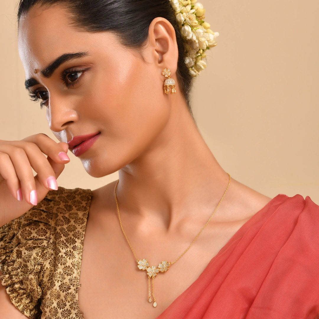 Crafted from genuine 925 silver and adorned with dazzling American diamonds, this playful piece brings floral charm and shimmer to your outfit. Perfect for celebrations where you want to shine and show off your desi flair!