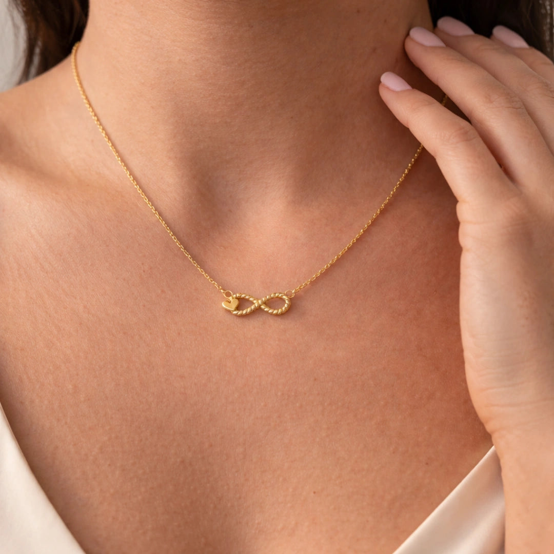 Twist to the classic Infinity necklace for your everyday comfort wear. Made with 925 silver, this necklace represents endless possibilities and adds a touch of elegance to any outfit. A perfect gift for yourself or a loved one, because everyone deserves a little infinity in their life. (Pun intended.)