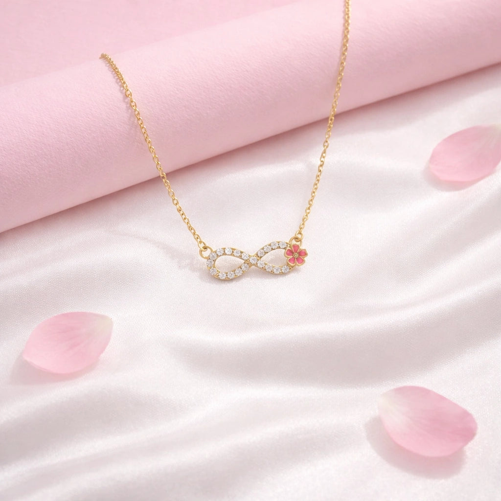 Handcrafted from 925 sterling silver and adorned with 22kt gold plating, it weaves together the symbolism of infinity with the delicate grace of cherry blossoms. Each petal captures nature's fleeting beauty, while the infinity loop represents timeless moments that never fade.