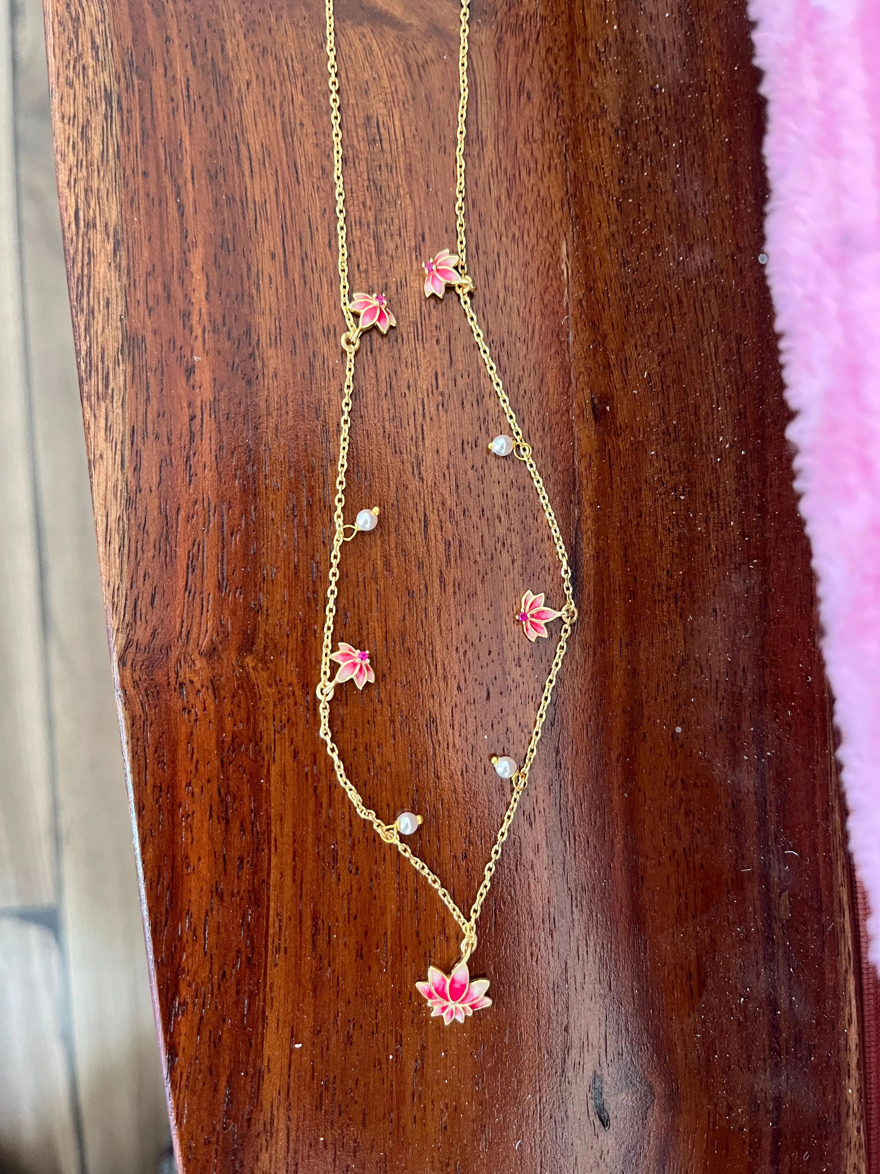 Made in 925 Silver & dipped in pure 22kt gold. Inspired by Goddess Laxmi. This stylish & designer necklace is perfect for your festive outfits & parties. Lotus is a symbol of purity, blissful & spirituality. Adorned with real Jaipur meenakari work. All our plating is 1 Micron in thickness, making it 10x thicker gold plating & long lasting for years.