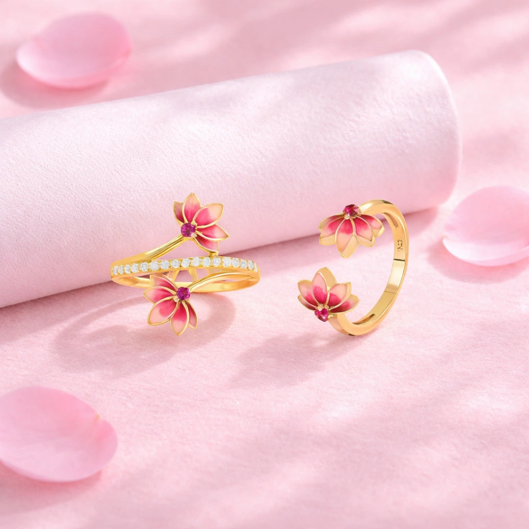Material- Sterling Silver, Silver wt- 3.5 gm & Stack ring wt- 3 gms , Size- Both are Adjustable in size (Inner diameter- 17 mm: can be adjusted to 20 mm), Plating- 22kt Gold Plating ( 1 Micron Thickness), Qty-1 Pc Bloom Ring & 1 Pc Stack Ring
