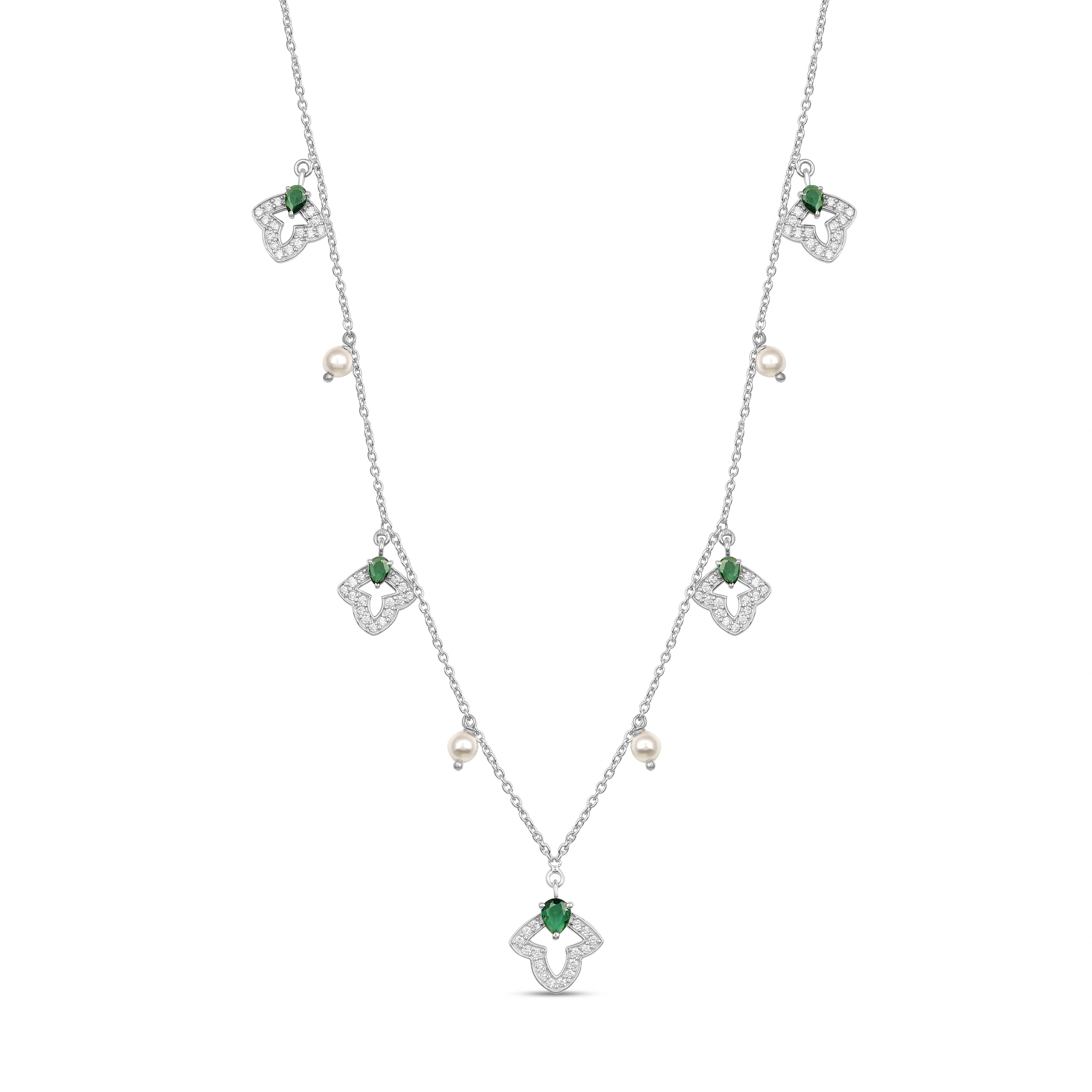A graceful blend of emerald and pearl, these drop earrings in 925 silver offer timeless charm with a soft, elegant glow. Perfect for both casual and special occasions.