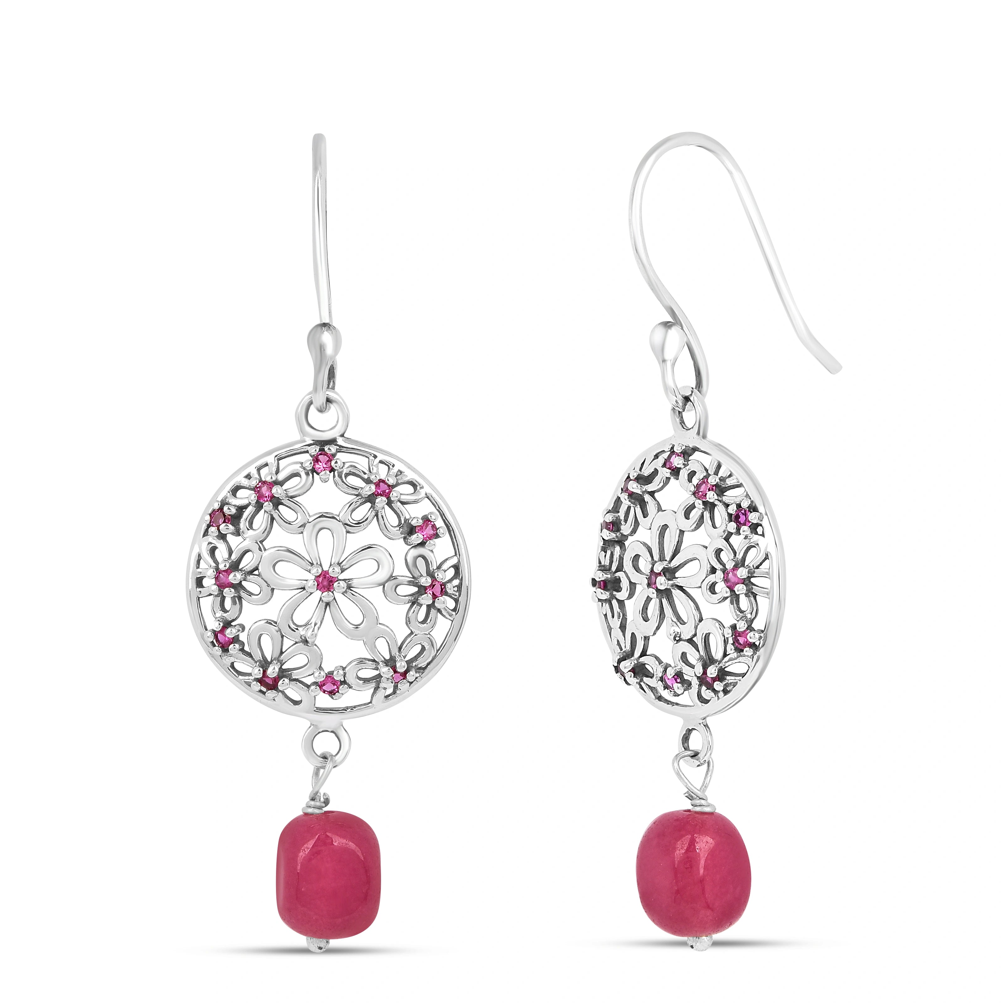 Material- 925 Sterling Silver, Silver wt-2.7 gm, Qty- 1 Pair, Plating- 22kt Gold Thick Plating, Gemstone- American Diamond & Deep Pink Quartz