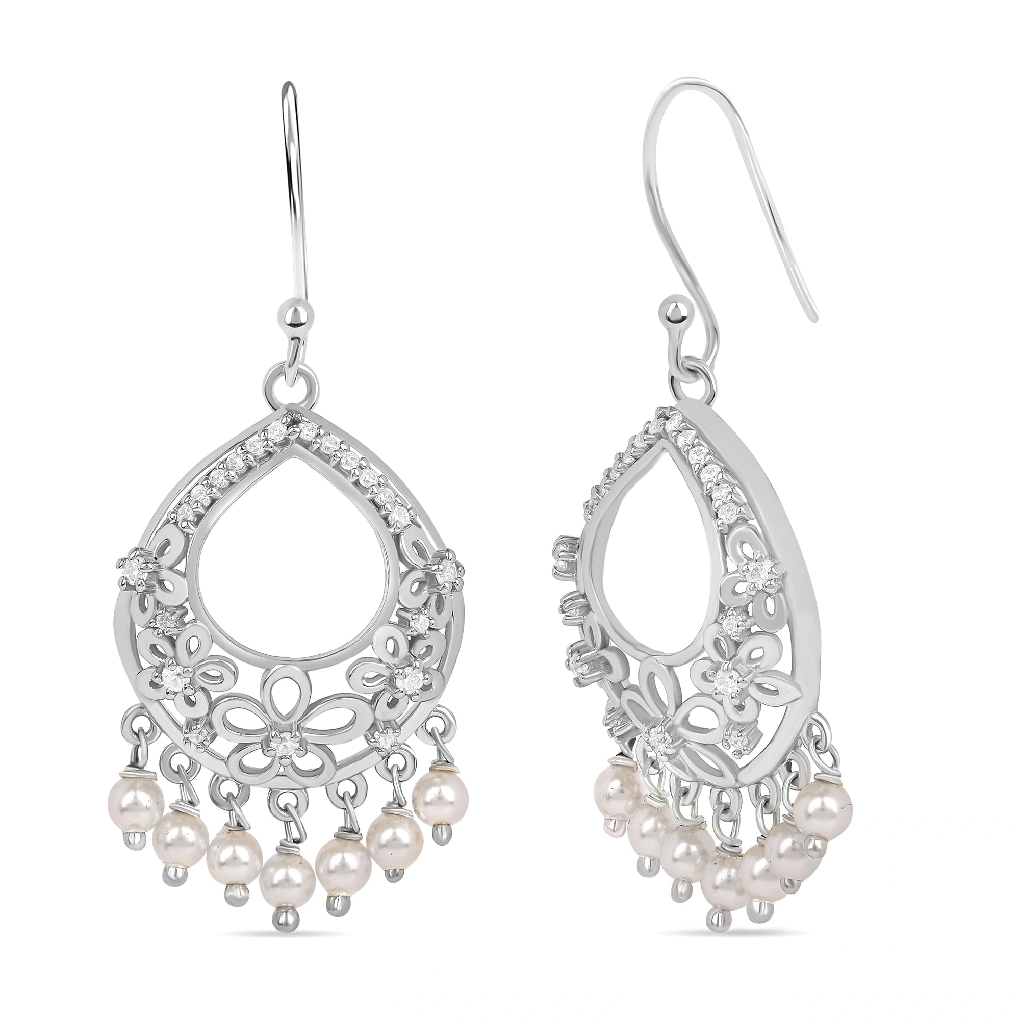 Material- 925 Sterling Silver, Silver wt-5 gm, Qty- 1 Pair, Plating- 22kt Gold Thick Plating & Silver Rhodium Plating, Gemstone- American Diamond & Artificial Pearls