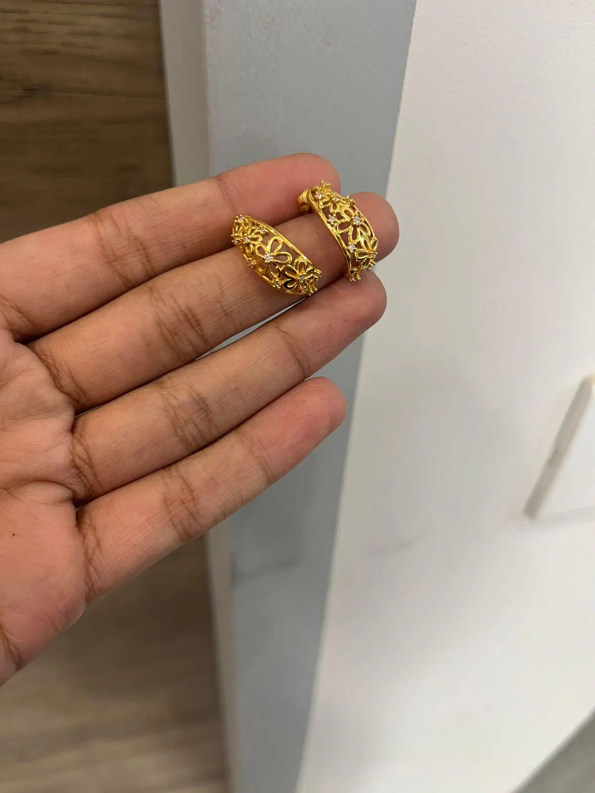 Material- 925 Sterling Silver, Silver wt-2.8 gm, Qty- 1 Pair, Plating- 22kt Gold Thick Plating, Gemstone- American Diamond