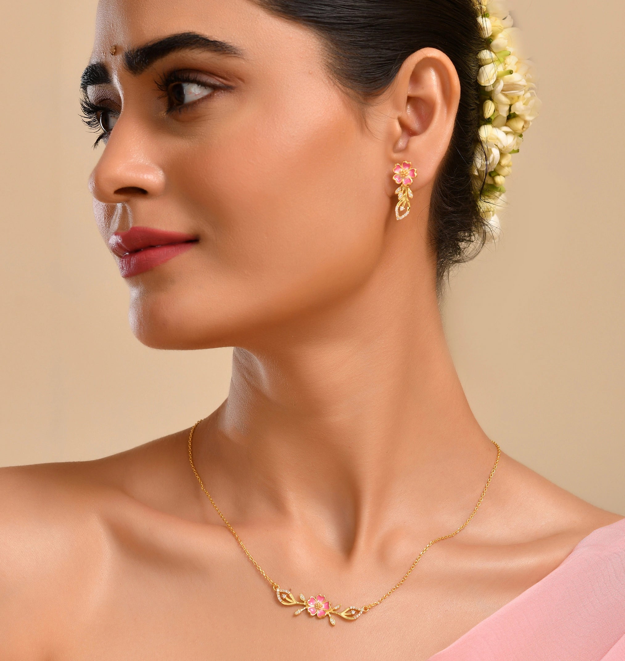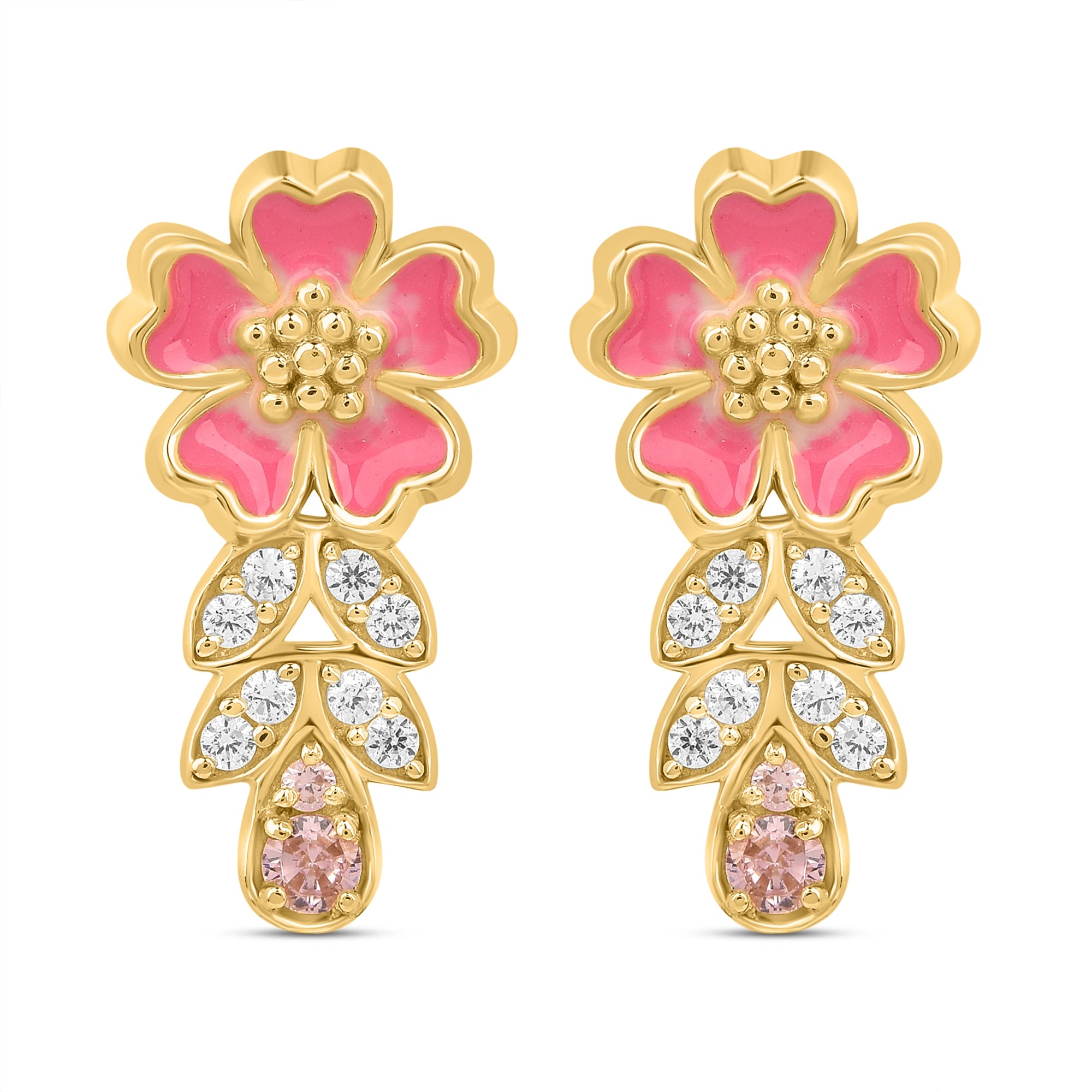 Made in 925 Silver & Crafted with shimmering pink AD stones and soft pink enamel details. Whether you're a flower enthusiast or just love statement pieces that make you smile, these beauties deliver instant glam with a whimsical twist. Dress them up or keep them casual—either way, you're guaranteed to turn heads and spread some floral joy!