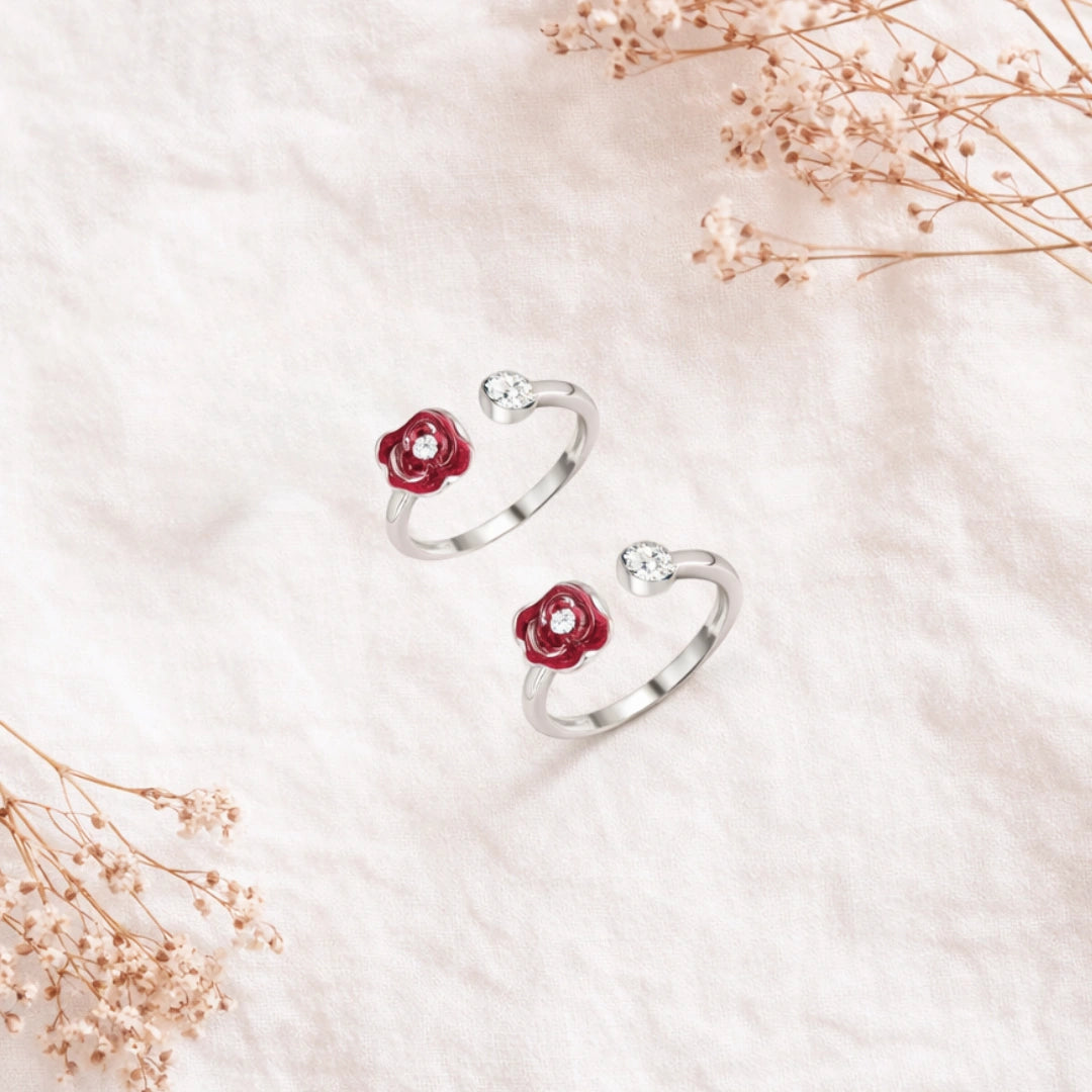 Crafted from 925 sterling silver with intricate red enamel detailing for that perfect red rose look. Lightweight and comfortable for everyday wear, they're an ideal accessory for those who appreciate nature-inspired jewelry with a modern twist. Ideal for romantics at heart & best for gifting.